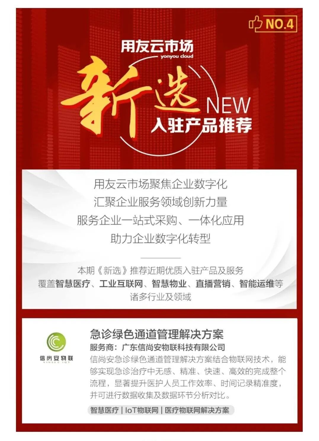 近期,信尚安物联荣获用友云市场“新选”入驻产品推荐。