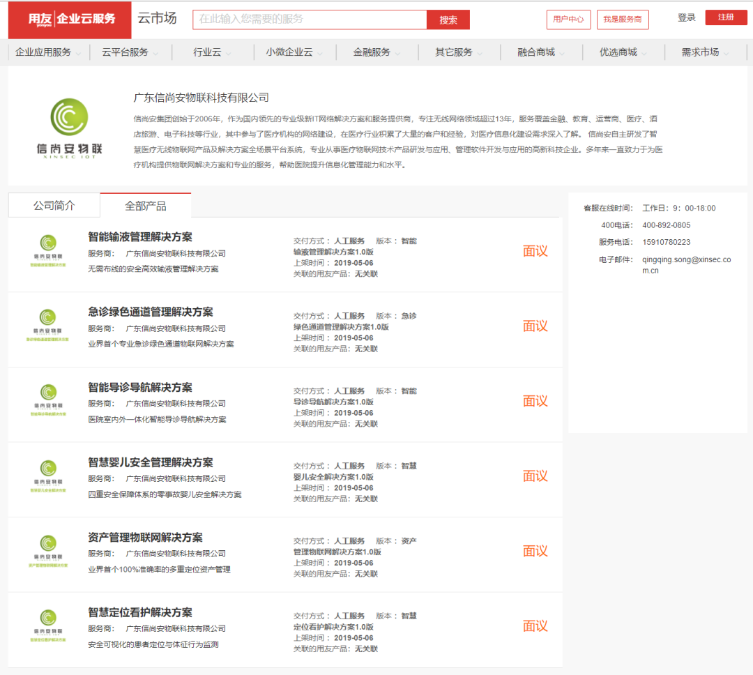 信尚安物联自主研发的产品被纳入用友云市场融合型生态产品目录,全面进入用友全国医疗行业资源推荐体系中,由用友云直接推广及营销,信尚安物联间接为用友云市场客户提供整体解决方案的一部分。